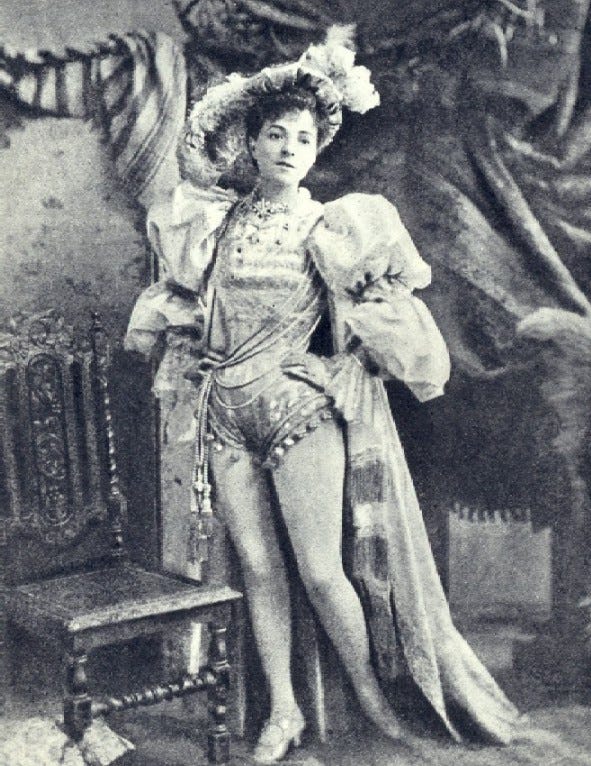 The showing of legs were even more provocatively displayed by Music Hall artist, Vesta Tilley.