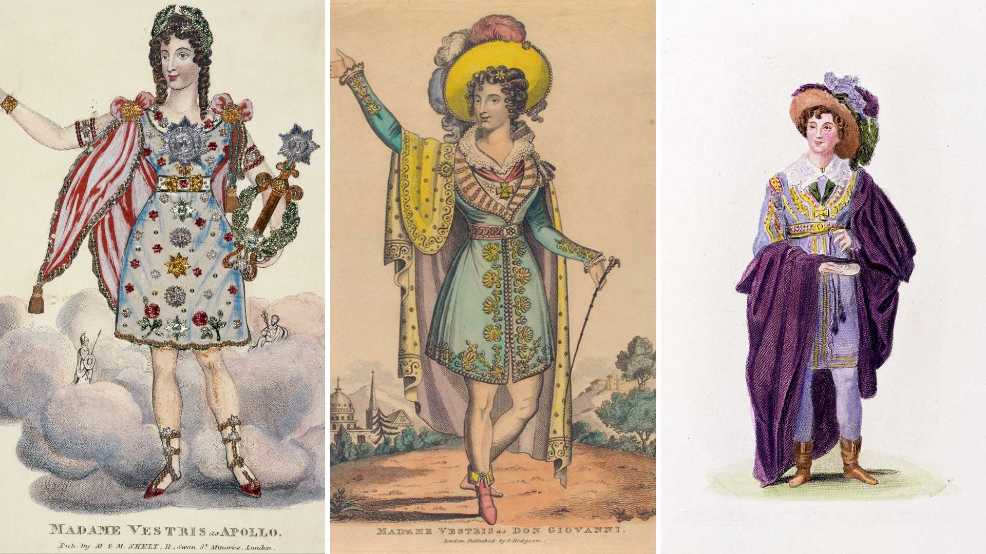 At the same time, there are levels of escapism and power dynamics in play. There was freedom from contemporary dress begun by Madame Vestris and her introduction of the ‘fairy tale’ pantomime, together with James Planche, that was less political than the sharp-edged clown-dominated spectacle of the 1830s in which Grimaldi dominated. Vestris’s scant pantomime costume allowed an escape from the restrictive, submissive behaviour moulded by contemporary Victorian dress. The fairytale inspired pantomime shaped the boy as a creature whose virginity allowed her/him to represent a noble, feminine mind while inhabiting a masculine role. On stage, the “boy” Prince became the active, valiant rescuer, someone who amplified the binary between conventional gender roles when paired with the passive “angel in the house” pantomime girl.